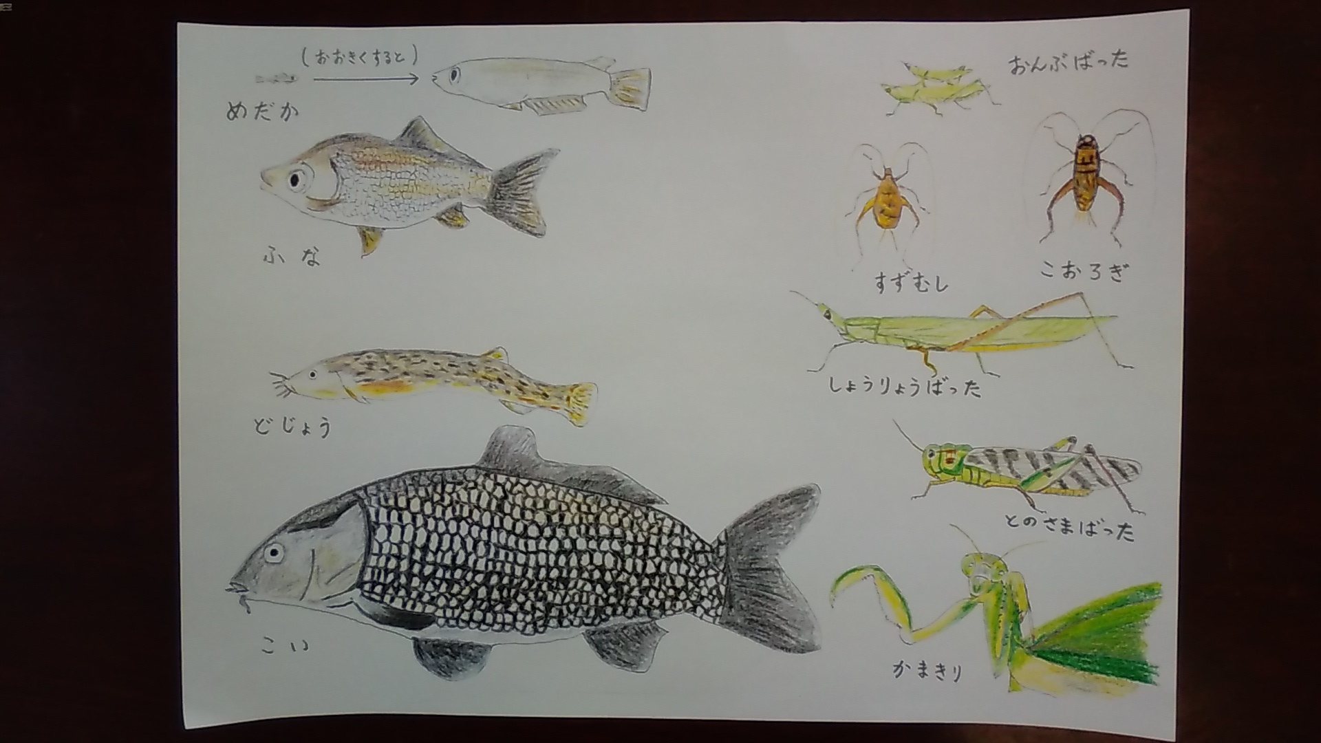 2016年5月17日 / 最終更新日 : 2018年12月5日 スタッフジョイ美容室 お知らせ 子供への頂き物 今日お伺いしたお客様から頂きました。 庭で見かけた虫などを書き、図鑑を見ながら色を塗られた力作です。 「お子さんは虫とかお好きですか?」と言われ、「大好きです」と言うと「孫に書いたもので良ければ」とカラーコピーをして下さいました。 100円均一のお店で買った色鉛筆のみで書かれたようです。 図鑑や本には生き物の生態や特徴などが書かれていますが、手書きの絵には生き物への愛情が書かれていますね。 虫好きの長男が喜ぶ顔が楽しみです。 FacebookXCopy